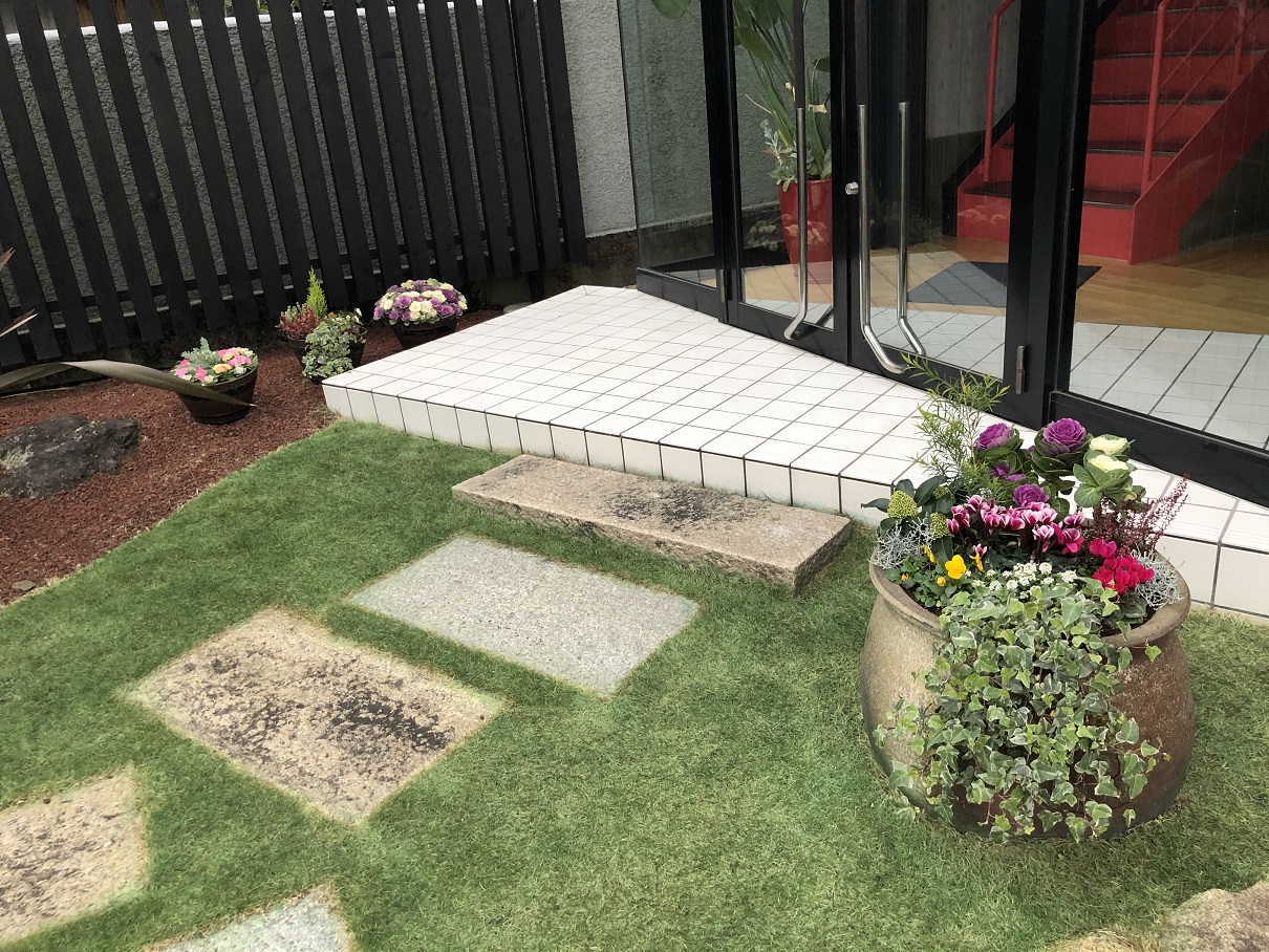 去年の9月にエントランスがリニューアルし、松沢さんが提案したフェイクグリーンは