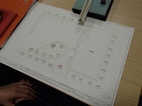 午前中は架空の事務所が記載された一枚平面図を元に好きに外構植栽デザイン体験!