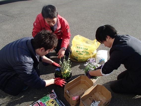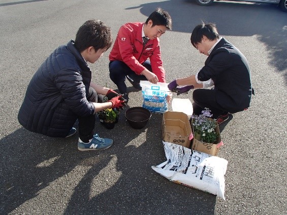 午後は太田市内にある実際に施工した現場の現状を見てもらい、そのあとに花植え体験!