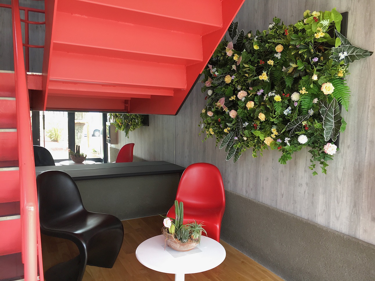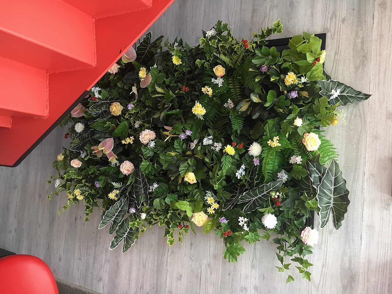 エントランスのフェイクグリーン、春バージョンをご紹介します!