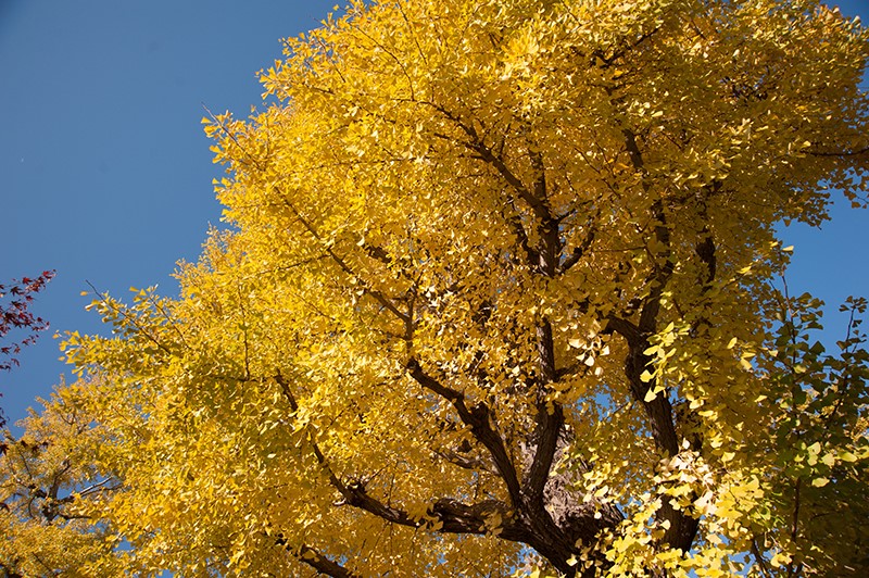 イチョウは4月~5月に花を咲かせ、11月初旬に紅葉していきます。
