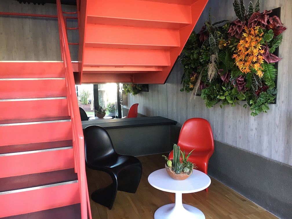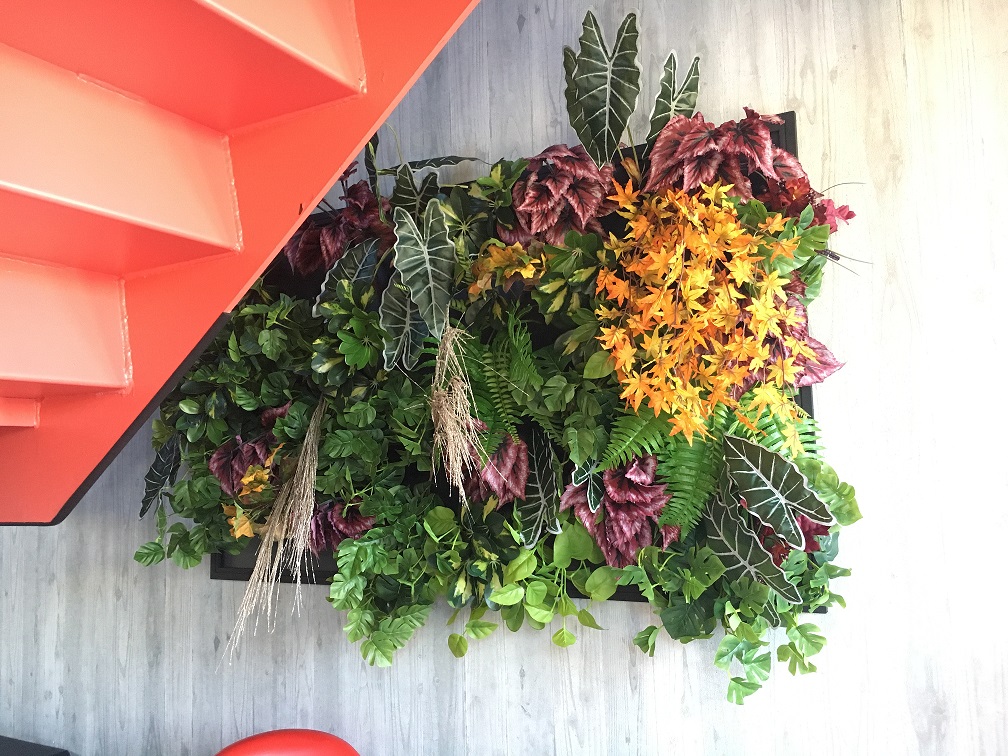 壁面のフェイクグリーンは季節ごとに少しずつ変えていく予定です。