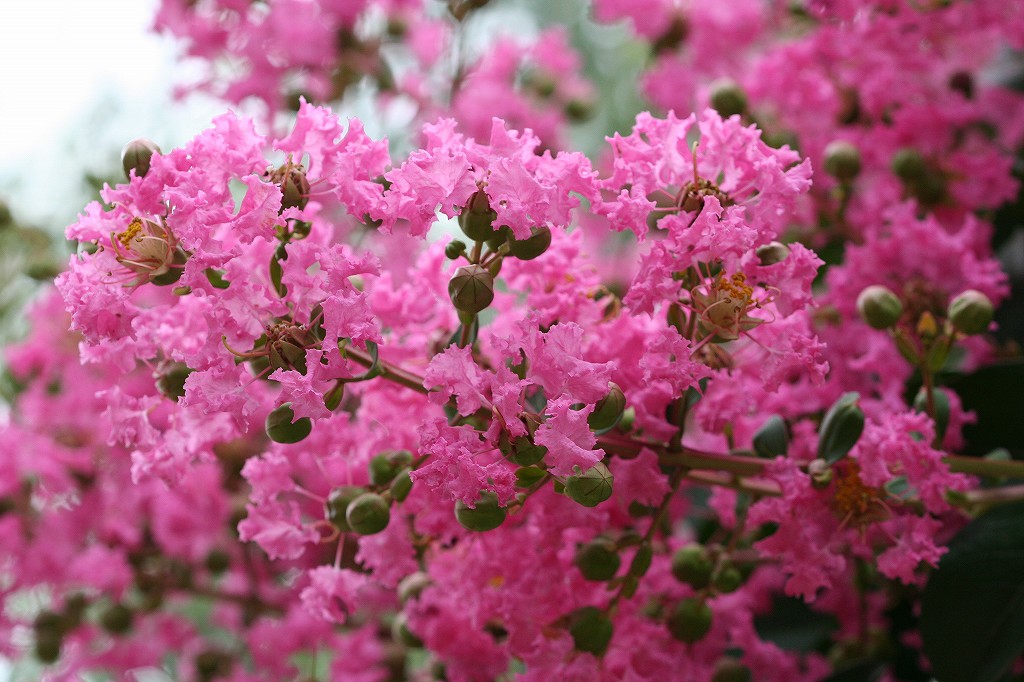 百日紅(ヒャクジツコウ)という別名があるように長期花を咲かせ続ける。