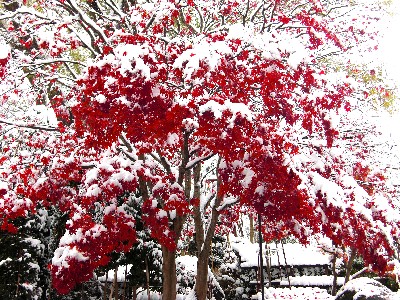 ですがこの季節外れの雪は、紅葉の中に雪が降るというなんとも珍しい光景を生み出しました。
