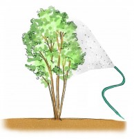 〇 水を弱く出したホースを、根元付近に置いて、ゆっくりジワジワと水を浸透させるようにし、表面だけでなく地中の根鉢や根の周りの土に水が染みこむようにしましょう。