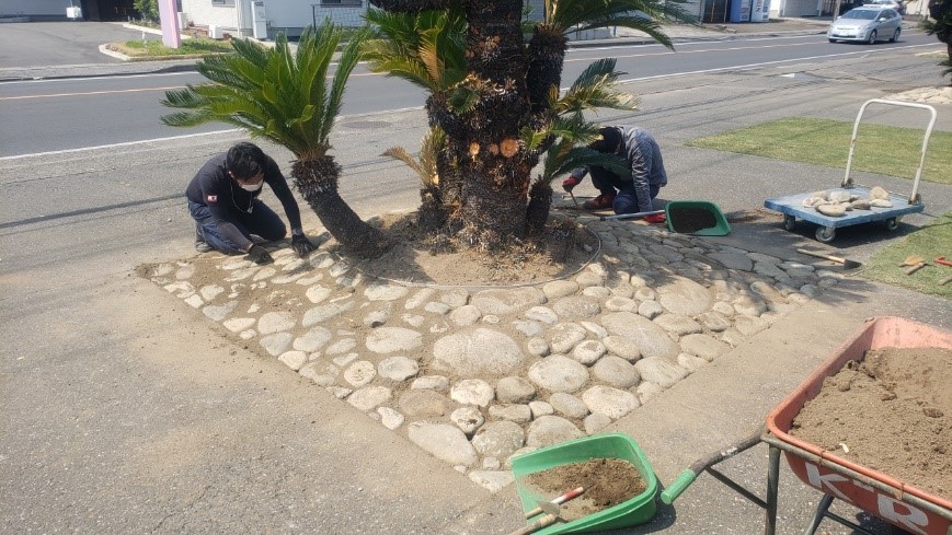 今回は本社緑地のソテツ下の緑地の改造について発表しようと思います!